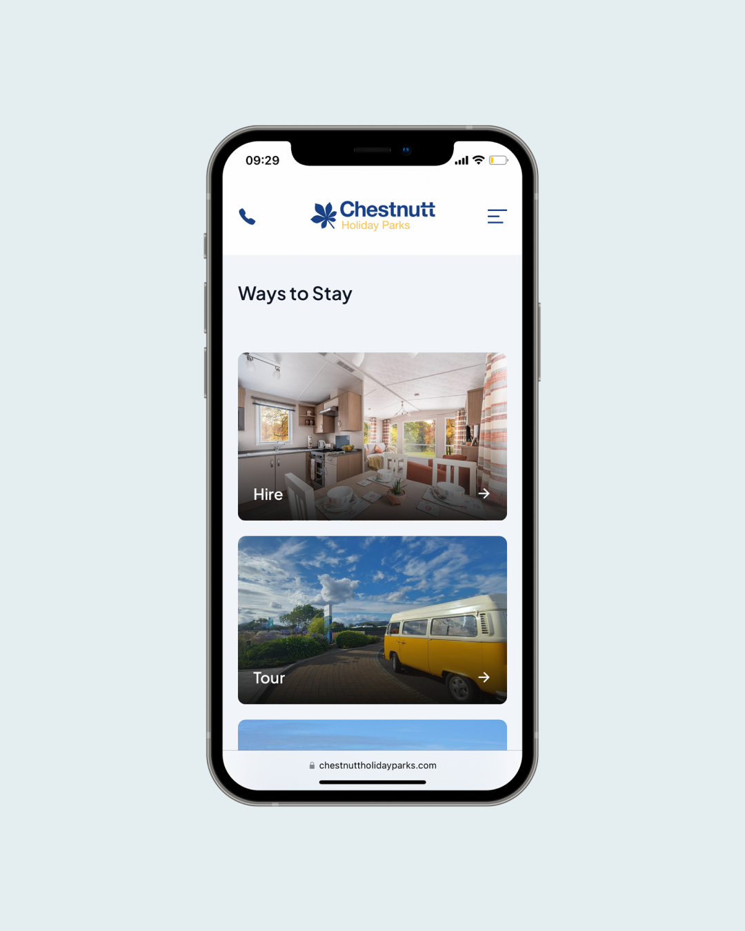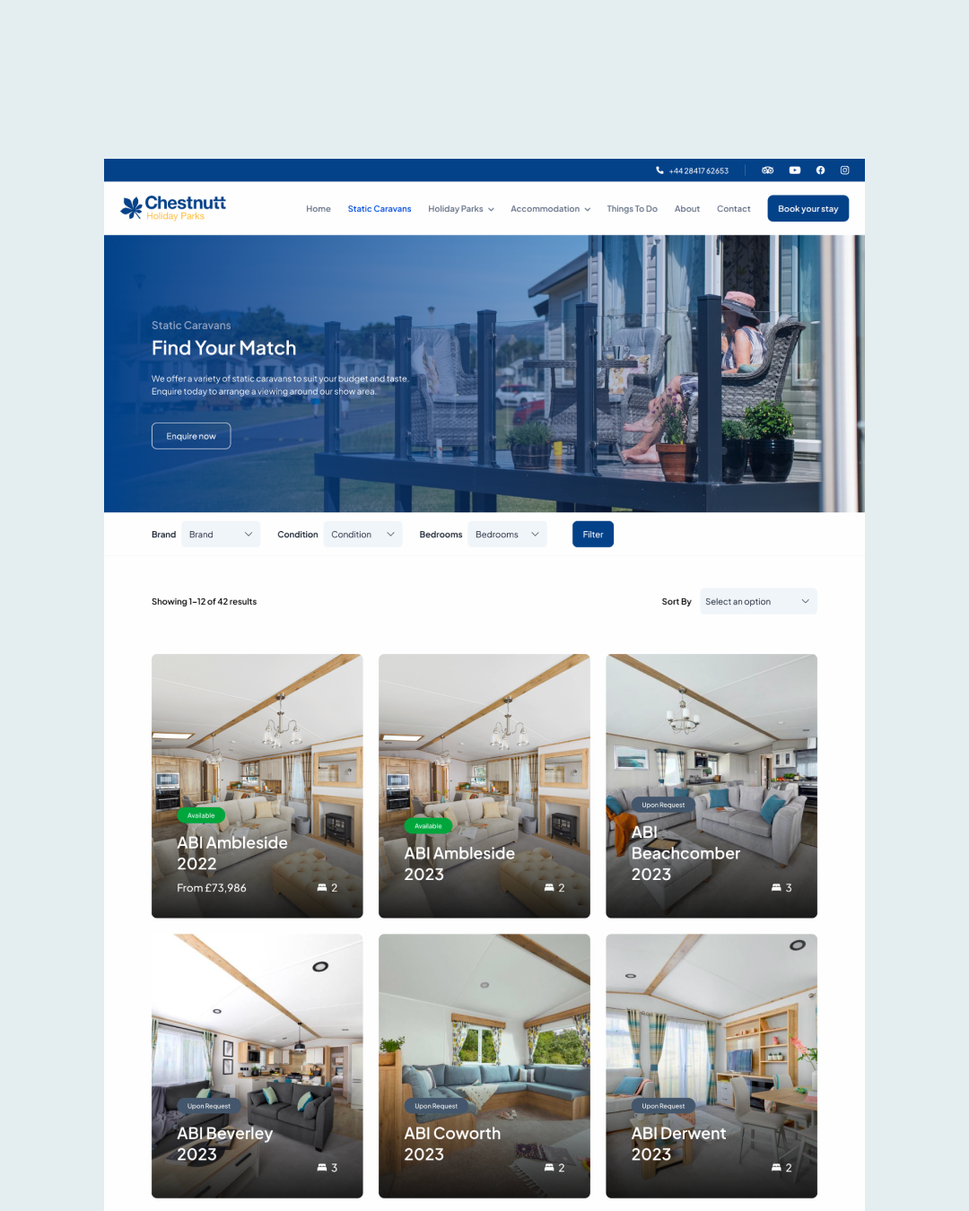 With growing expertise in User Experience, our Designers decided to re-evaluate Chesnutt’s website design. We examined Usability Heuristics, researched competitors, and carried out User Interviews and Testing with Chestnutt’s own customers. This allowed us to design a new website layout and user flow that helped the customer achieve their goals, whether that be browsing caravans for sale, booking a touring spot, or browsing events in the local area. Our aim was to maintain the brand identity of Chestnutt’s whilst simultaneously giving the website a fresher, more modern look and feel.